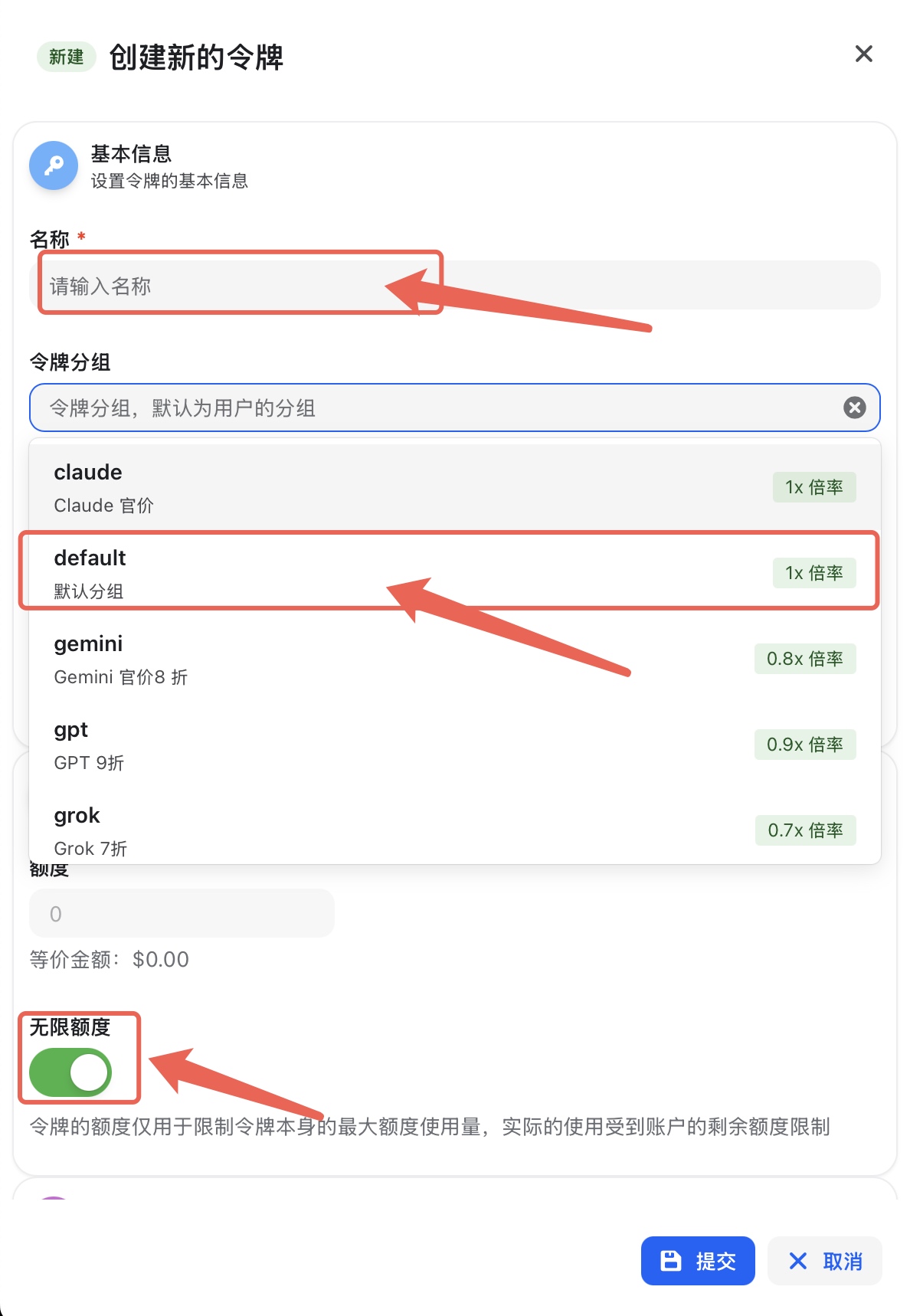 在设置额度时,建议选择 “无限额度”,这样您可以充分使用账户内的余额,避免因单 Key 额度耗尽导致服务中断。