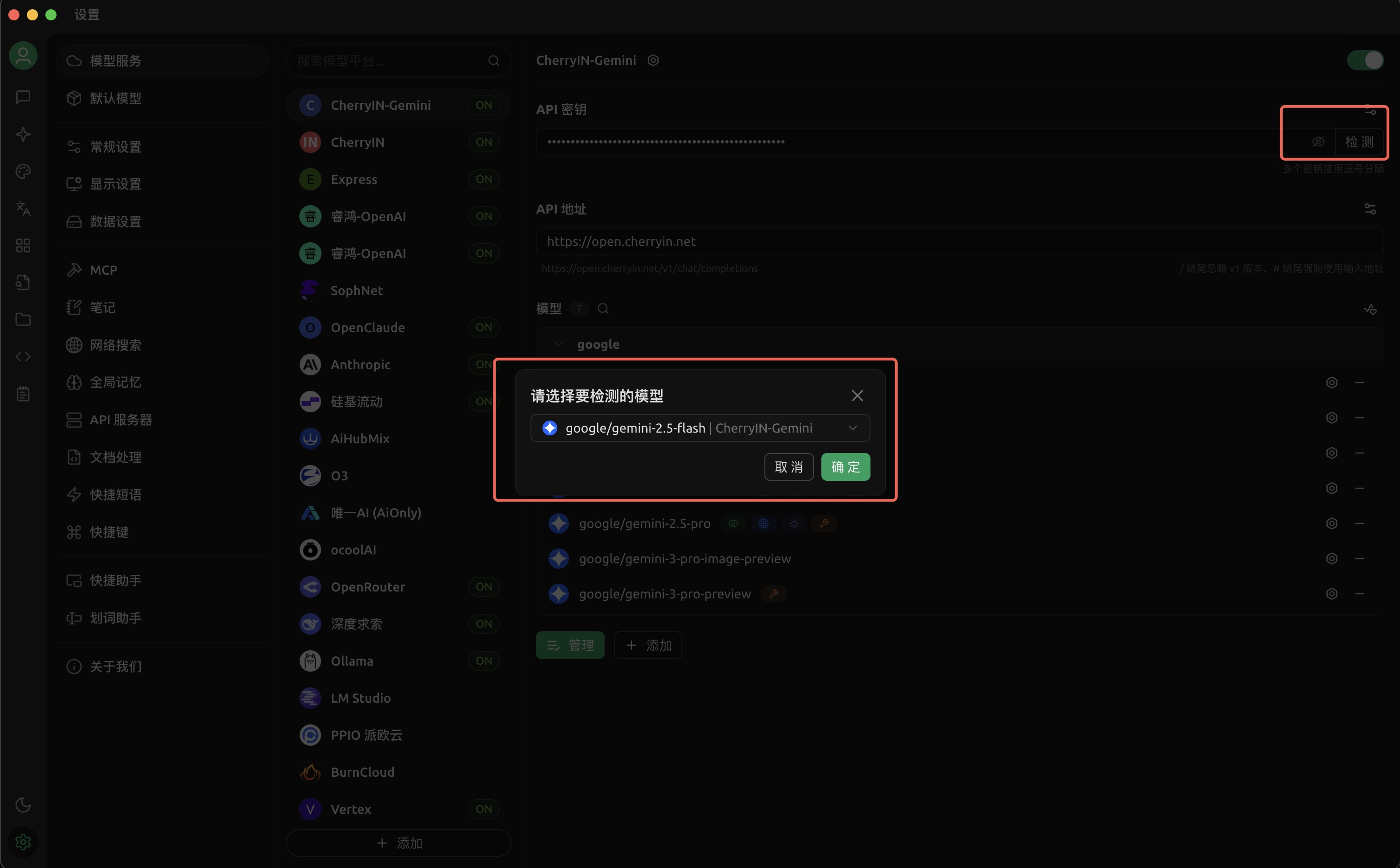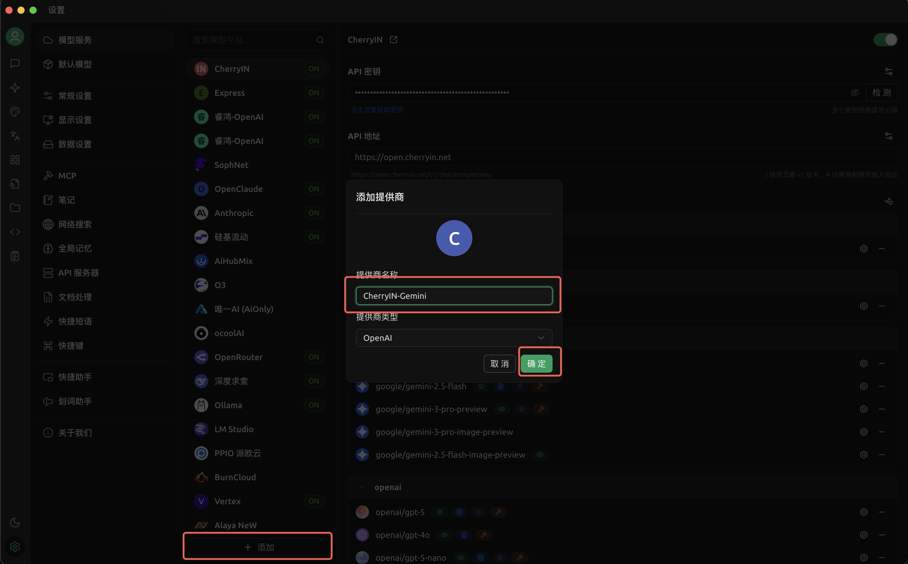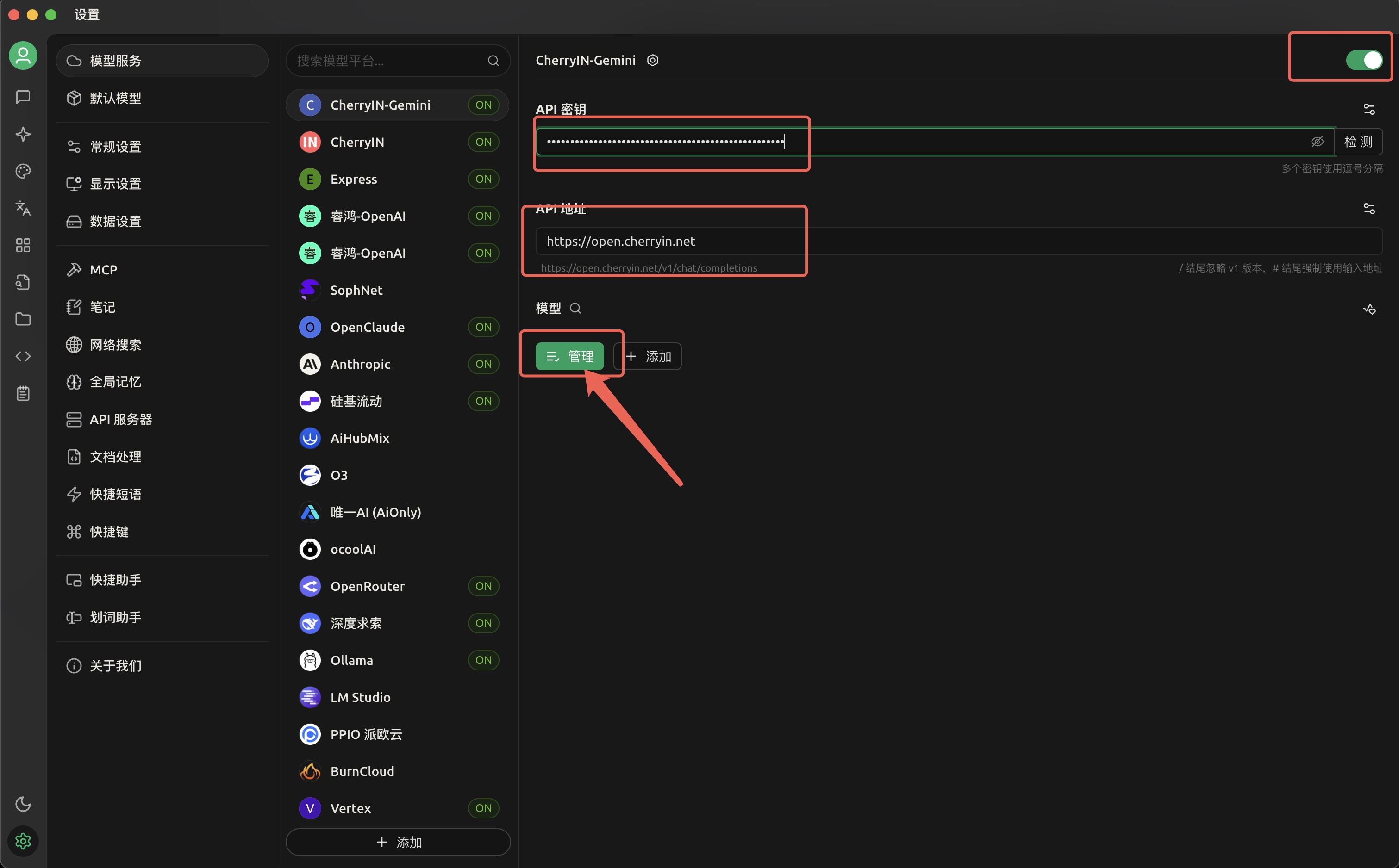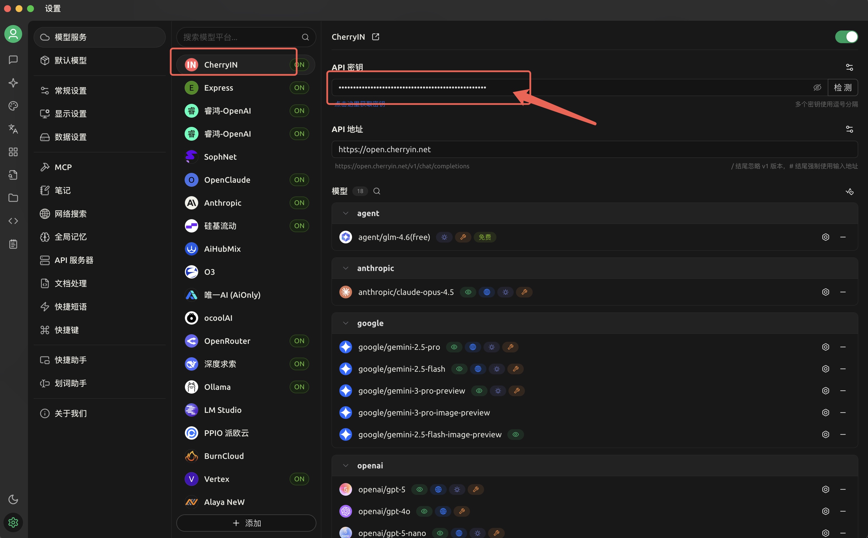 https://open.cherryin.net - API Key: 填写您在